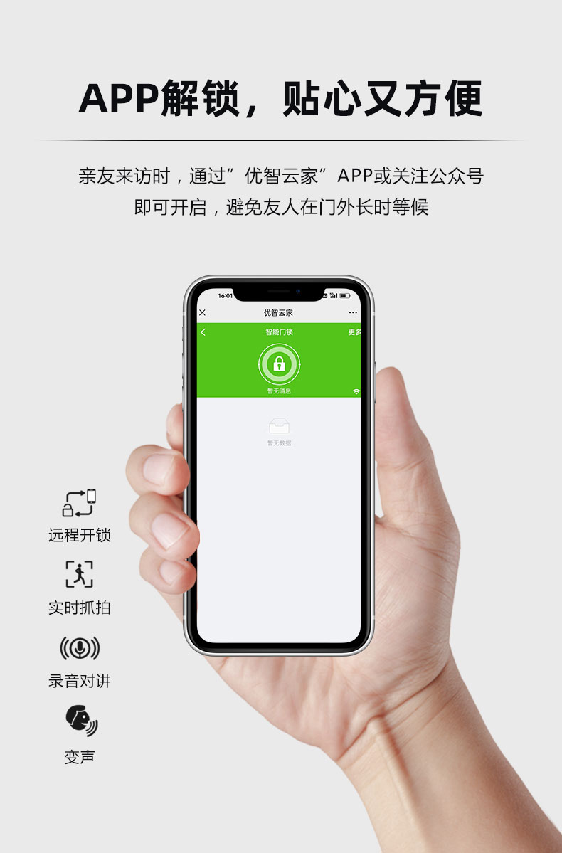 夜間的安全尤為重要,我們的智能鎖利用紅外(wài)補光夜視技術,即使在完全的黑暗中也能拍攝精準清晰。此外,當有人在門前(qián)逗留時,AI高頻微波雷(léi)達能在3米範圍內精(jīng)準探測到活動,並自動啟動抓拍功能,同時將圖片實時發送到您的手(shǒu)機。這一功能不僅增強了家庭的安全,還(hái)為(wéi)您帶來(lái)了前所(suǒ)未有的便利。