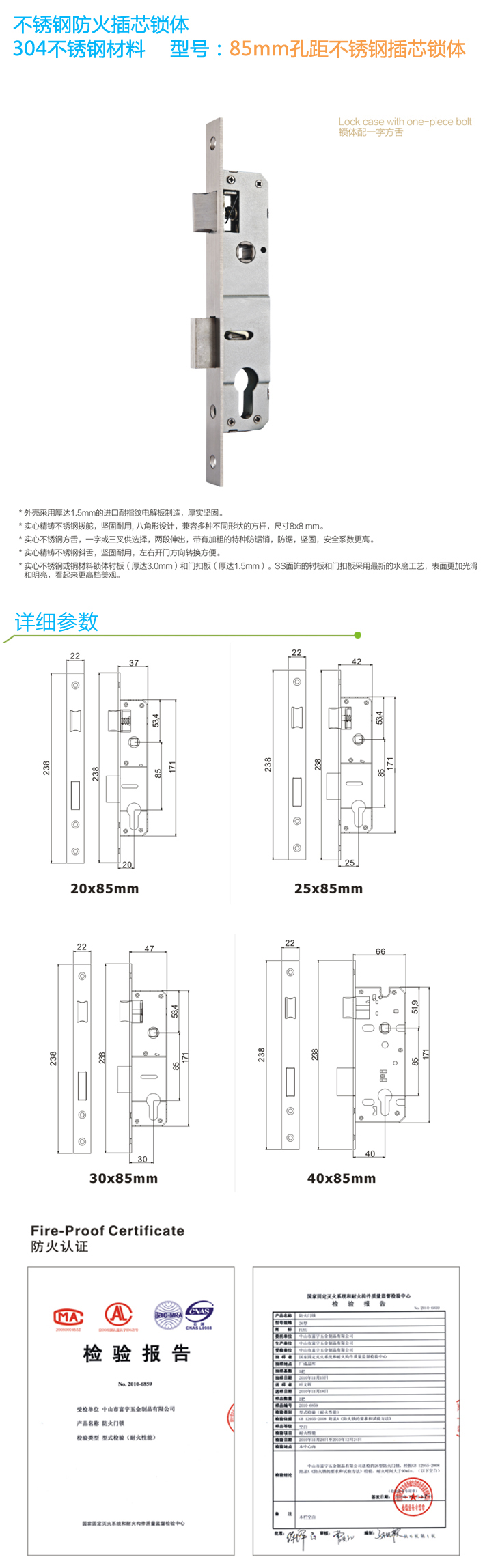 * 表示必填采購:20-40*85孔距不(bú)鏽鋼插芯鎖體