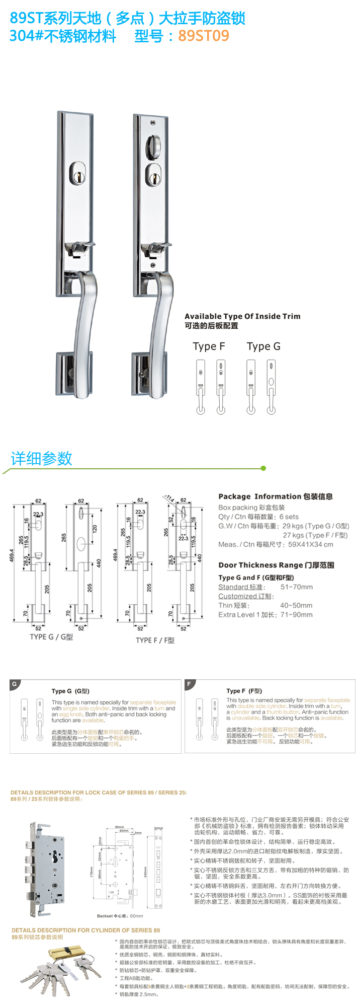 不鏽(xiù)鋼防盜大拉手鎖 89ST09