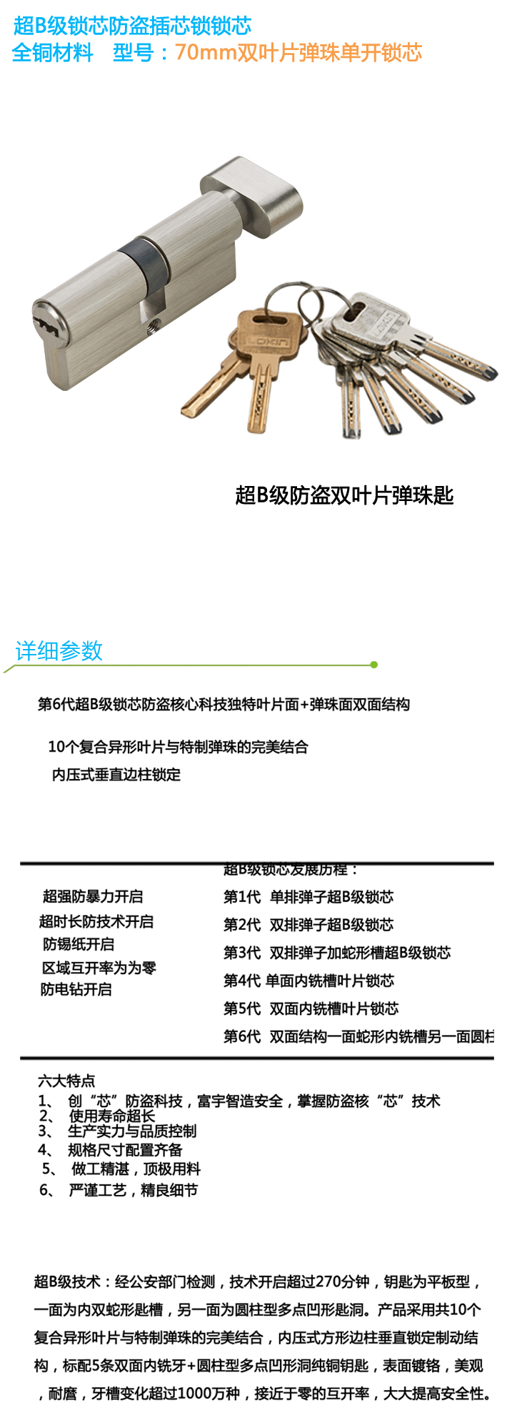 - C級鎖芯 葉片彈珠匙單(dān)開鎖芯 AB
