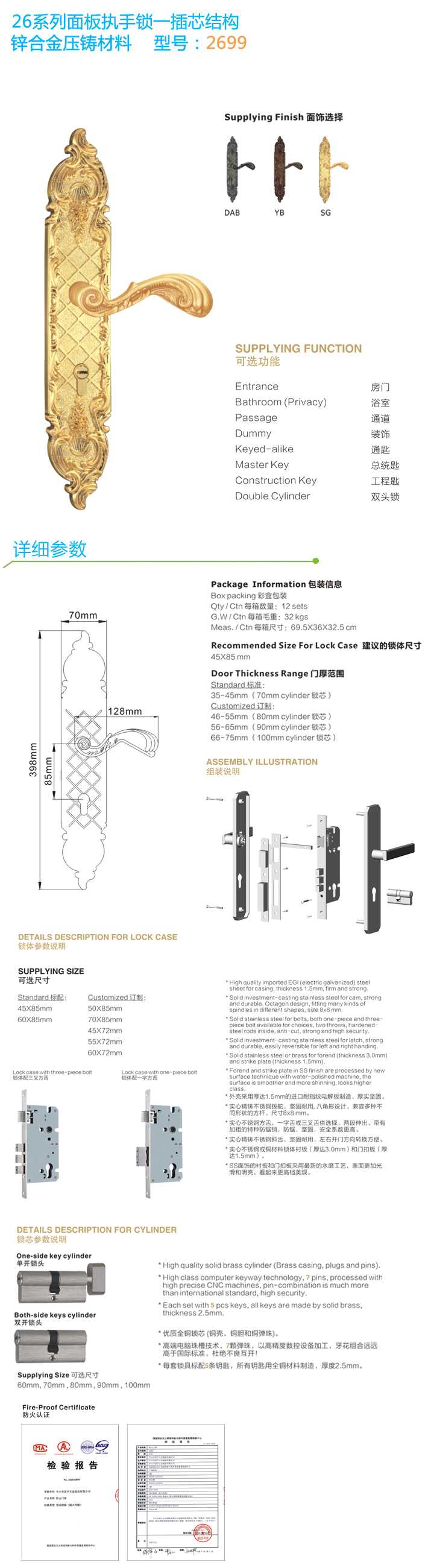 - 古典歐式麵板執(zhí)手鎖 2632