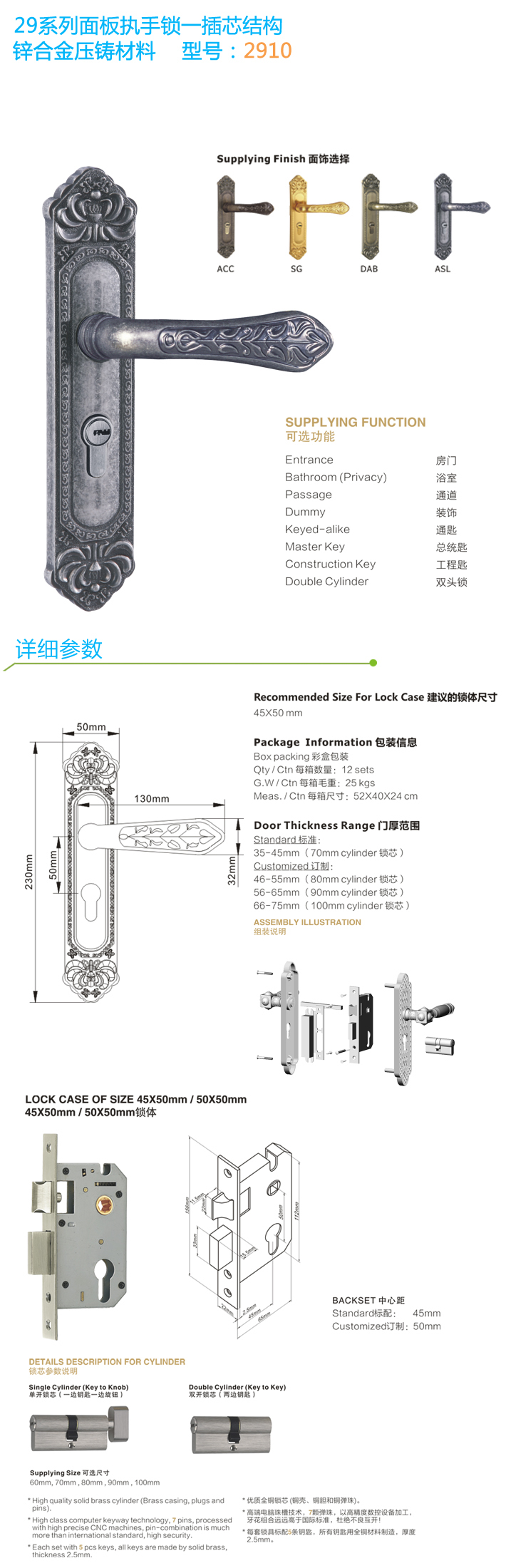 * 表示必(bì)填采購:古(gǔ)典小麵板執手鎖 2910