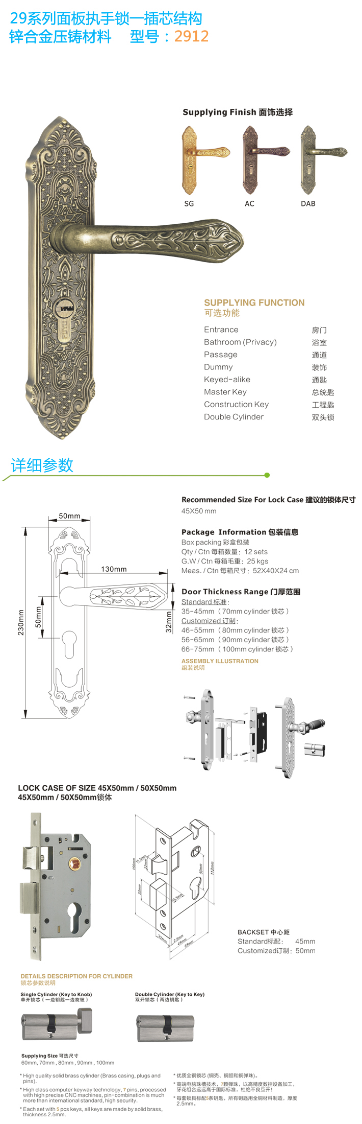 古典小麵板執(zhí)手(shǒu)鎖 2912