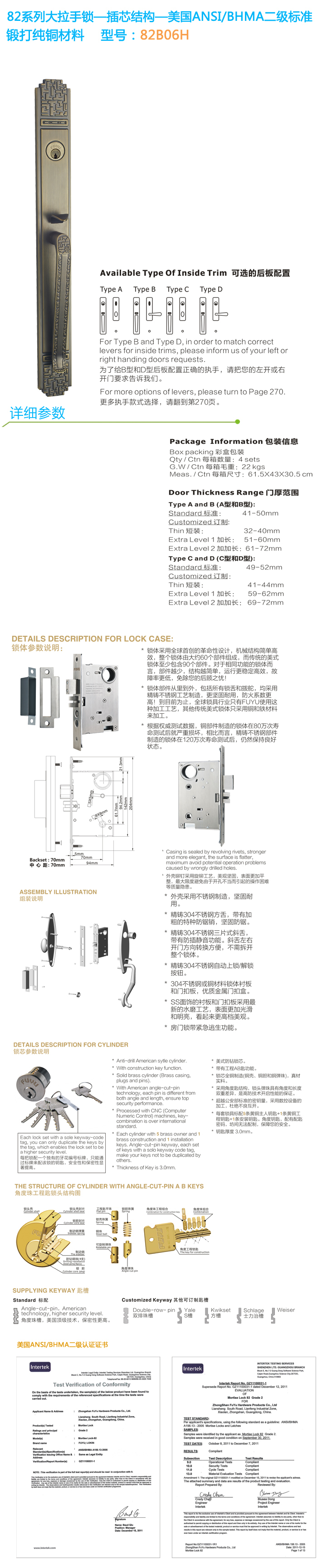 - * 通過(guò)美國ANSI/BHMA GRADE二級(jí)認證