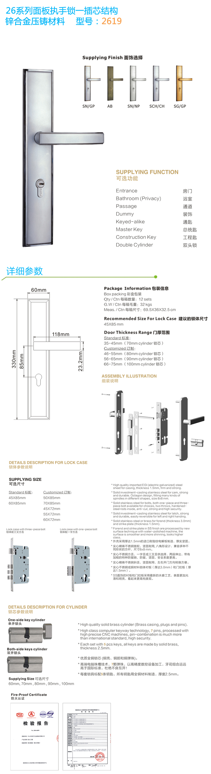 - * 適用(yòng)於各種室內門和(hé)金屬門